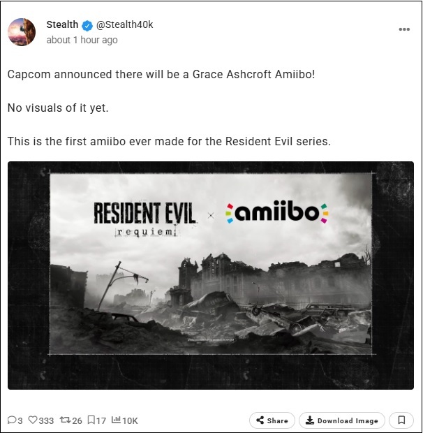 Grace Ashcroft, l'héroïne de Resident Evil Requiem, deviendra le tout premier amiibo de Resident Evil à l'été 2026.