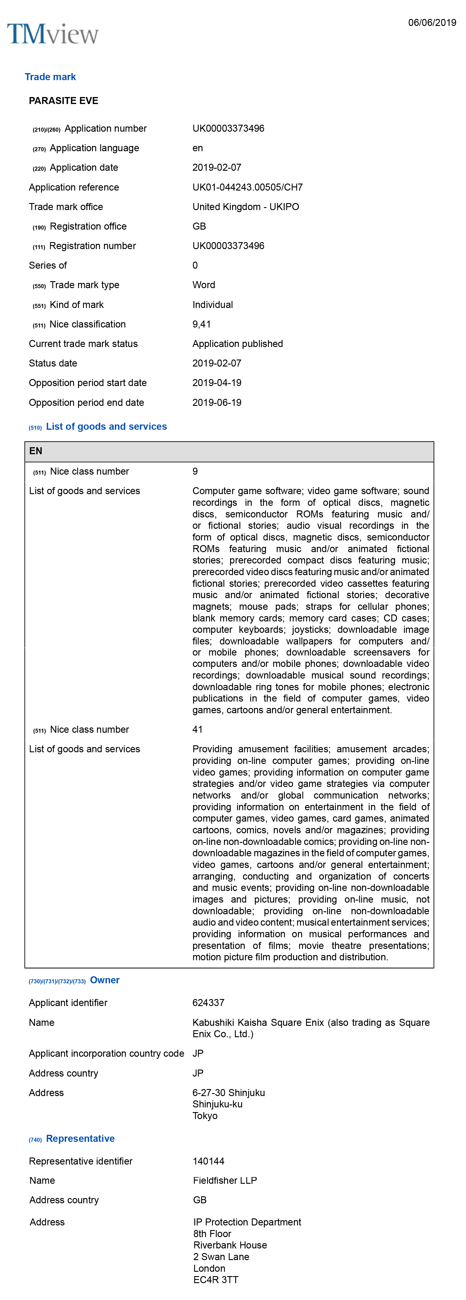 Découvert par quelques fouineurs : Square Enix a déposé la marque Parasite Eve il y a quelques temps, non pas dans un renouvellement mais bien un dépôt tout neuf.