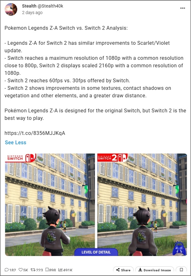 - Légendes Z-A sur Switch 2 présente des améliorations similaires à celles de la mise à jour Scarlet/Violet.
