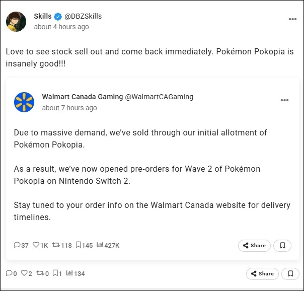 12. [SW2] Pokemon Legends: Z-A – Nintendo Switch 2 Edition (The Pokemon Company, 10/16/25) – 4,463 (1,095,003)