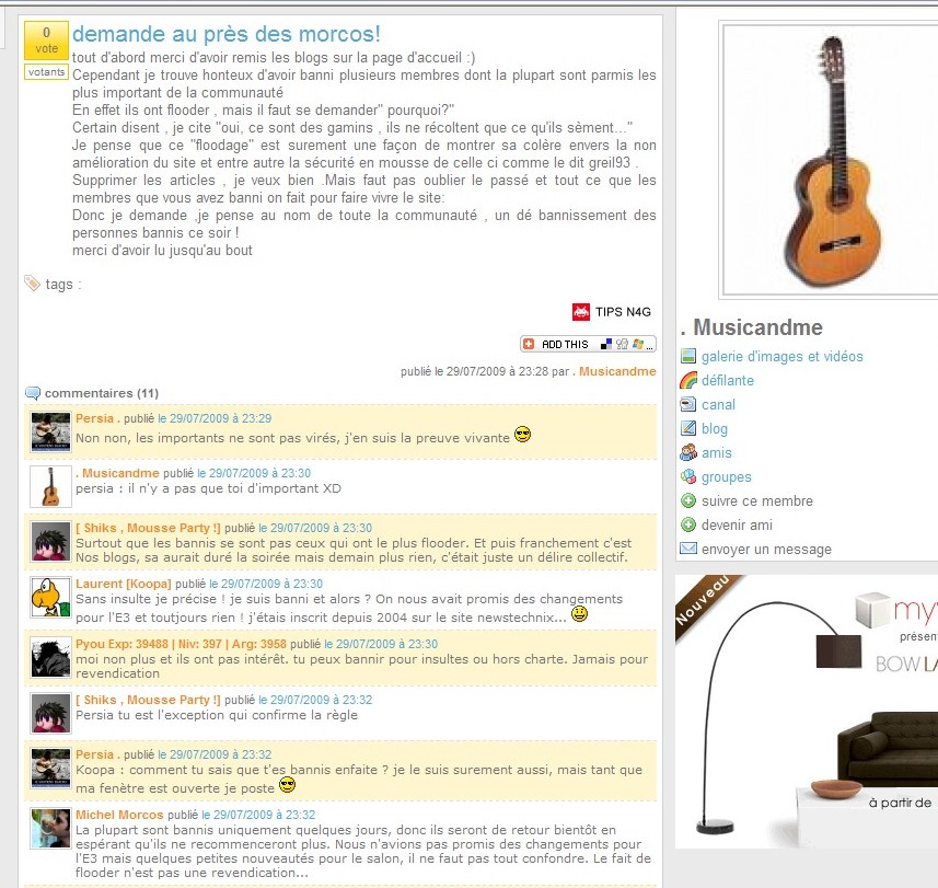 dont j'en suis sure beaucoup s'en souviennent encore ici ^^ le délire de MOUSSE du 29 juillet 2009 était dans la continuité de la révolte de l'hiver d'avant et était un ras le bol général des membres envers la piètre qualités du site à ce moment là qui n’évoluait pas et le silence de ces créateurs. du coup les imprim écran ci dessous sont bcp plus claire...un moment de fun ou tous ici avaient complètement pété un câble pour le meilleur et le pire