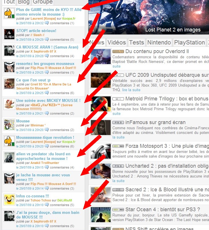 En tout cas même si nous saurons pas la réponse de la majorité d’entres elles, on peut dire que gamekyo sait accueillir une demoiselle, en voici la preuve ci-dessous avec ce petit article d’ Alymenthe qui perdu dans les baffons de gamekyo est devenu l’article ayant reçu le plus de com et ça ne cessent d’augmenter…