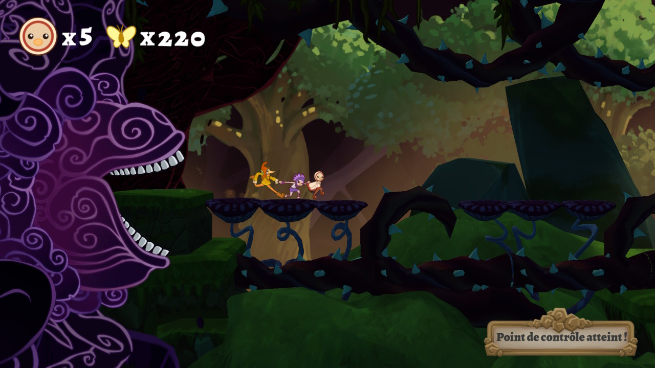 Le fait d’alterner d’un héros à l’autre offre beaucoup de possibilités au niveau du gameplay. D’autant qu’il arrive de passer à un endroit, puis d’y revenir usant des capacités d’un autre personnage. Le chemin emprunté, ou la manière d’accéder, est de ce fait légèrement différent. On apprécie les divers endroits visités, toujours bien colorés. Le rendu visuel est d’ailleurs assez plaisant je trouve, proposant un côté graphique aux allures de cartoon. Notre exploration est accompagné d’une bande son de bonne facture. Elle est agréable, c’est tout juste ce qu’il faut pour bien agrémenter notre exploration. Et toute exploration ne se fait pas sans rencontrer certains monstres, qu'on retrouve assez souvent d’un endroit à l’autre. Il en existe de plusieurs sortes certes, mais j’aurais apprécié davantage de diversité de ce côté-là. Par contre, on apprécie les combats contre certains boss, plutôt bien mis en avant, je trouve. Cependant, si on meut face à l’un d’eux il faut se taper à nouveau l’ensemble des dialogues.