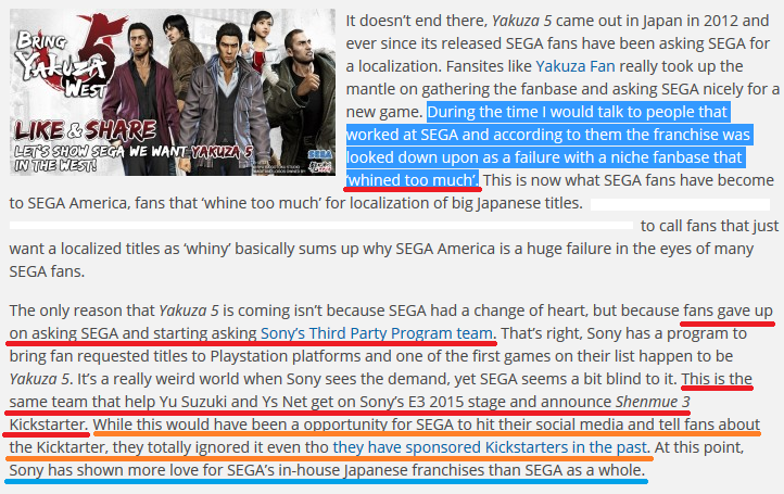 Yakuza 5 en Europe et faciliter la résurrection de Shenmue 3. Ce responsable chez Sony est chargé d'établir une liste des jeux les plus demandés sur les réseaux sociaux et entretient d'excellentes relations avec Sega.