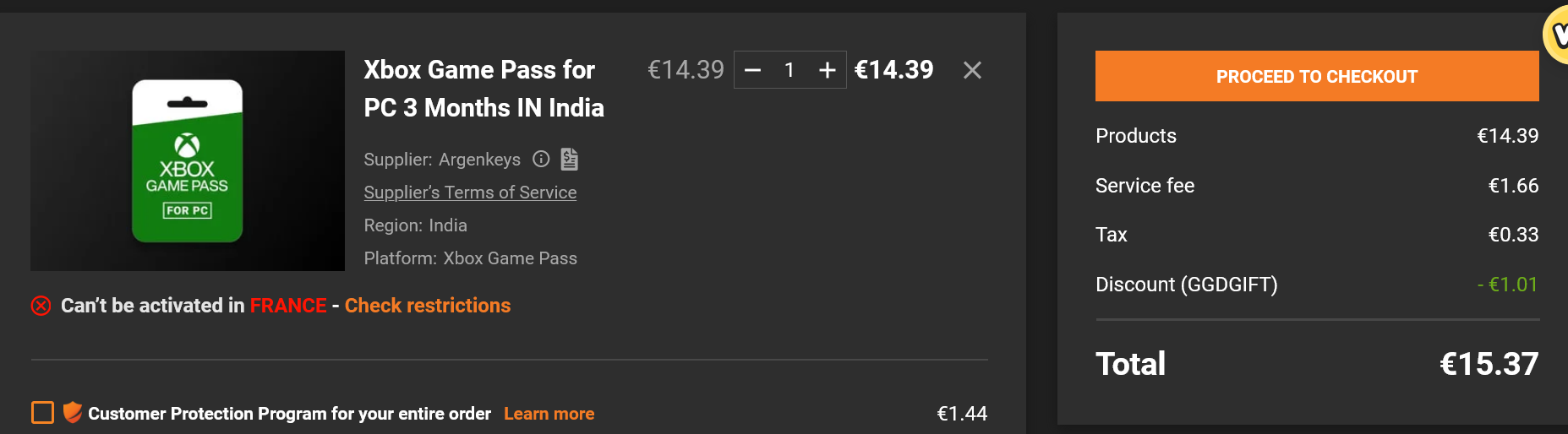 une fois le Gamepass PC 3 mois mis dans le panier (attention prenez le "regular price" pas le "smart price")