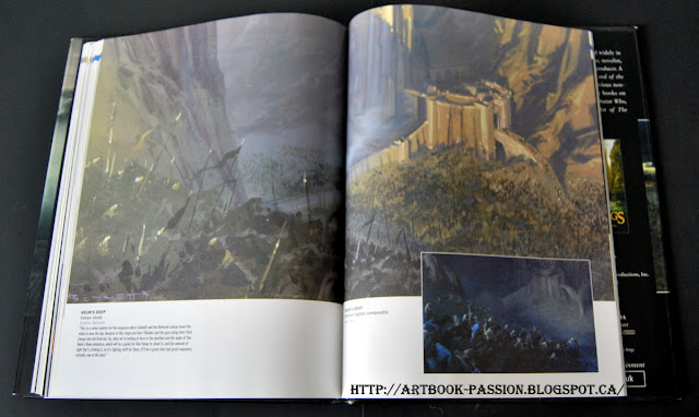 L’artbook suit la chronologie du film en commençant par le combat entre Gandalf et le Balrog en passant par tous les endroits importants comme les terres du rohan, le gouffre de Helm ou encore Fangorn pour ne citer qu’eux. Chaque partie est introduite par une double page avec une illustration peinte représentant les lieux avec son nom.