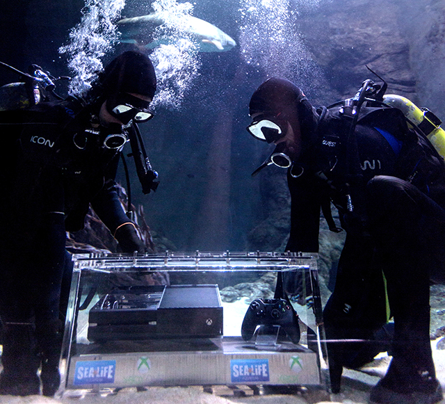 Non je déconne! En réalité, la console sera simplement retirée de l'aquarium et vendue au premier acheteur du monde! Chouette coup de com de la part de Microsoft en tout cas!