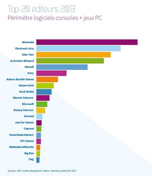 davidsexking : Il s'agit du total de jeux vendues en 2013 par éditeurs et Nintendo est très loin devant, même si la Wii U plomb les résultat financiers de 2013, ils sont toujours dans le vert et ceux sans avoir eu besoin de licencié, ils ont même encore embauché du monde.