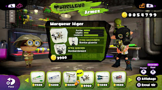 Nouvelle petite mise à jour pour Splatoon qui accueille une nouvelle arme : le Marqueur léger ! Cette arme dispose d'une faible portée et cause peu de dégâts. Toutefois, sa cadence d'encrage en ravira plus d'un, bien qu'elle ne soit pas au maximum ! Vous disposez en arme secondaire de la Bombe gluante et son arme spéciale est le Bombardement de bombes gluantes. Je vous propose quelques images de de cette nouvelle arme ainsi que ma session JeGeekJePLAY dédiée au Marqueur léger au stand de tir...
