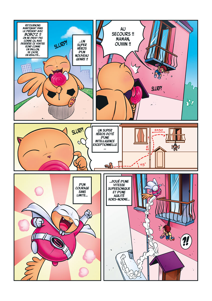 Commençons par une petite mise à niveau du personnage Bobo’Z qui est apparu dans le manga français Head Trick pour la toute première fois. Si vous avez suivi le manga phare qu’est Head Trick, vous avez croisé plusieurs fois le chemin de Bobo’Z. Ce chat n’est pas comme qui dirait normal, il dispose vraiment d’une force surhumaine et sa corpulence ne l’empêche pas de se déplacer à une vitesse extraordinaire. Au contraire, il est très vif et ingénieux en plus d’être stylé, car oui il est vêtu d’une tenue assez particulière : un nœud de papillon. Si vous connaissez Bobo’Z, alors vous connaissez son point faible, ce qui fait de lui le personnage loufoque que l’on aime tant. Mais si vous le découvrez aujourd’hui, sachez que ce « chat ballon » est un Aniball complètement accro au soda rosâtre du nom de Milkiky. Petite aparté, les Aniballs naissent dans les ballons et sont les mascottes des équipes de foot du manga Head Trick. C’est donc au travers de cette bande dessinée que nous allons découvrir les péripéties de Bobo’Z qui va tout faire pour choper un MILKIKY et il est prêt à tout pour y arriver !