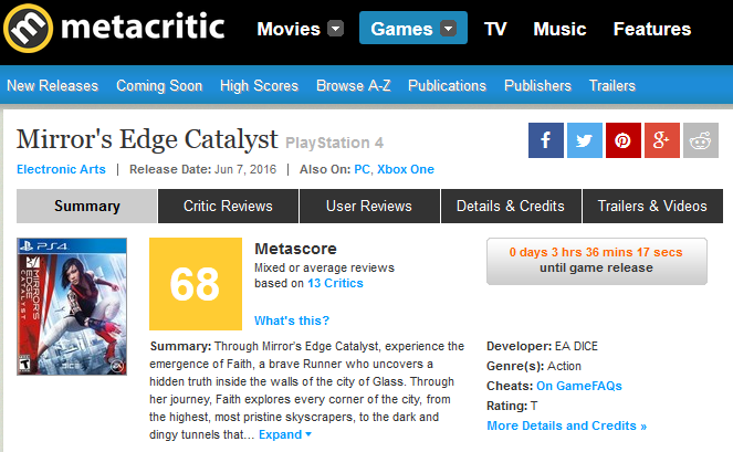 Non car ce Mirror's Edge résume bien l'effort d'EA a faire une suite d'un jeu qui n'a pas marché voir bidé et le retournement de veste des joueurs va être épique. Une honte cette génération !!