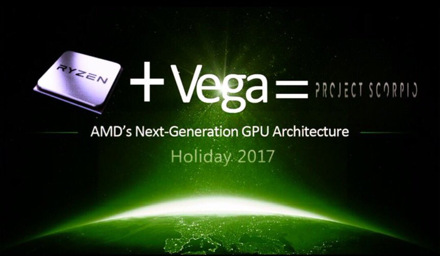 Cette image a été prise lors du CES 2017, montrant apparemment une présentation de la Xbox Scorpio sur le stand de Vega/Ryzen d'AMD. Présentée comme le nouvel horizon pour les jeux en 4K et en VR, les deux principaux atouts que Microsoft cherchent à mettre en avant. La Xbox One Scorpio pourrait également utiliser la nouvelle architecture Vega qui est actuellement utilisée dans les processeurs des PC Ryzen récemment commercialisés, ce qui signifiait une qualité graphique conséquente. La prochaine console de Microsoft combinerait donc un GPU et un processeur de haut niveau, ce qui donnerait un produit intéressant, en se basant sur les spécs seules.