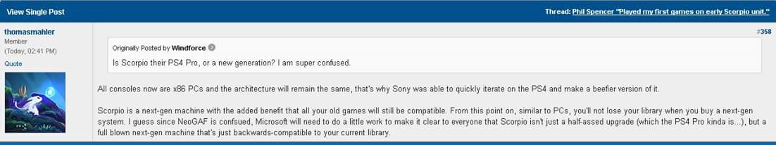 Confirmation également que la Scorpio est bien une console next gen.