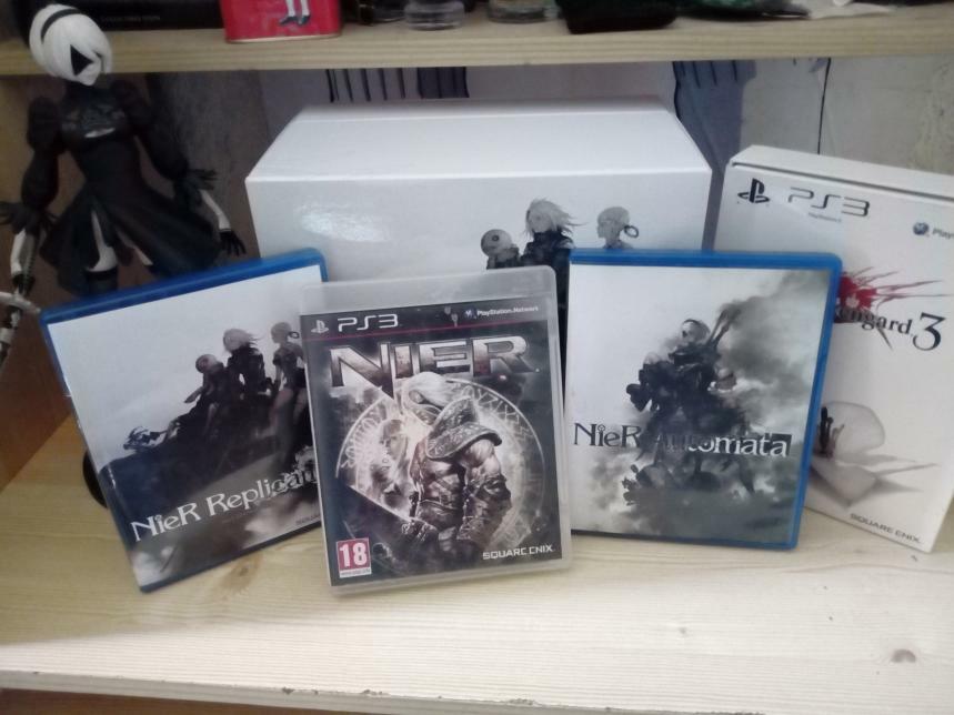 Enfin, j'ai reçu le sésame, le saint-graal! Il est temps replonger dedans! Il rejoint la famille. Me manque plus que Drakengard 1 mais il était pas à moi à l'époque.