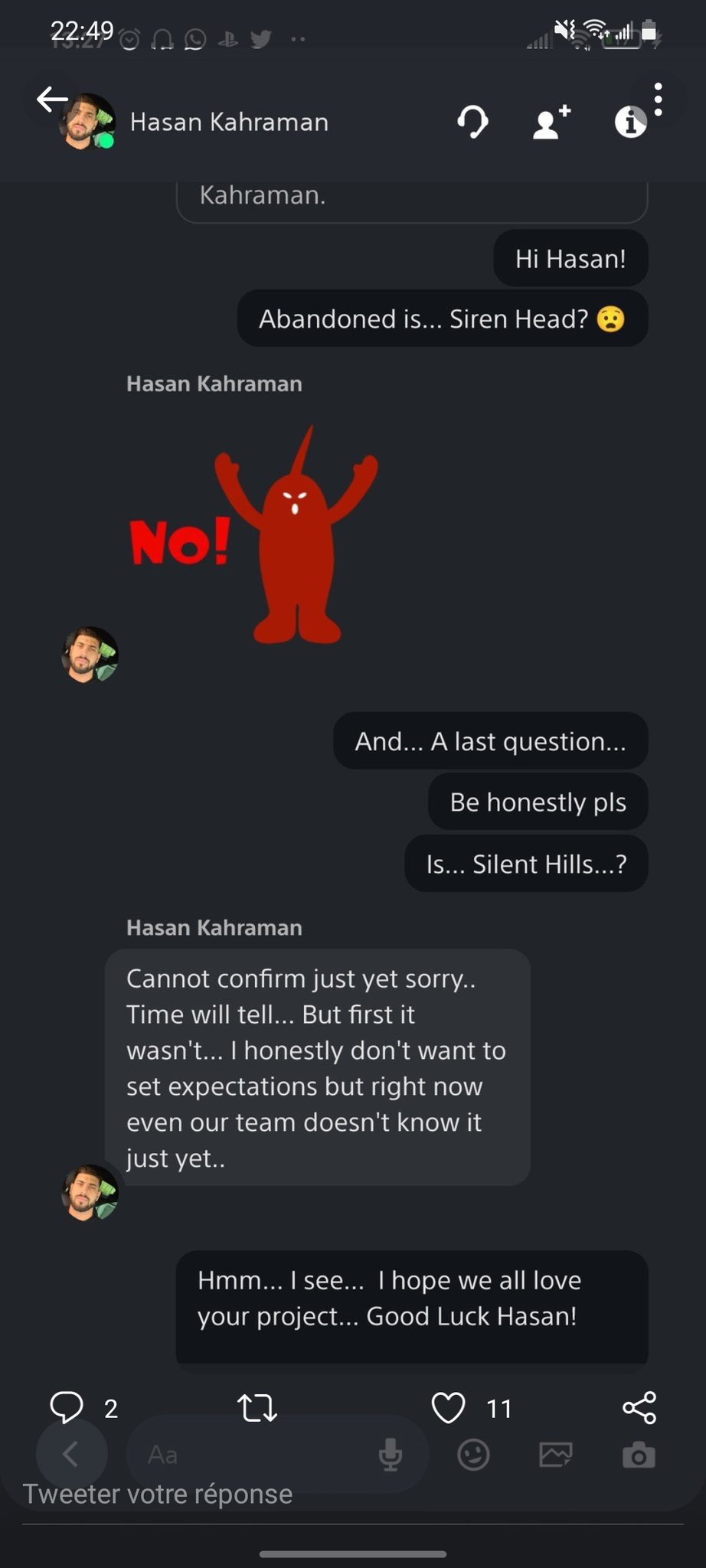 Sinon tu pense quoi de mon message d'en haut ? Concernant la réponse de Hasan à la question si c'est Silent Hill ....