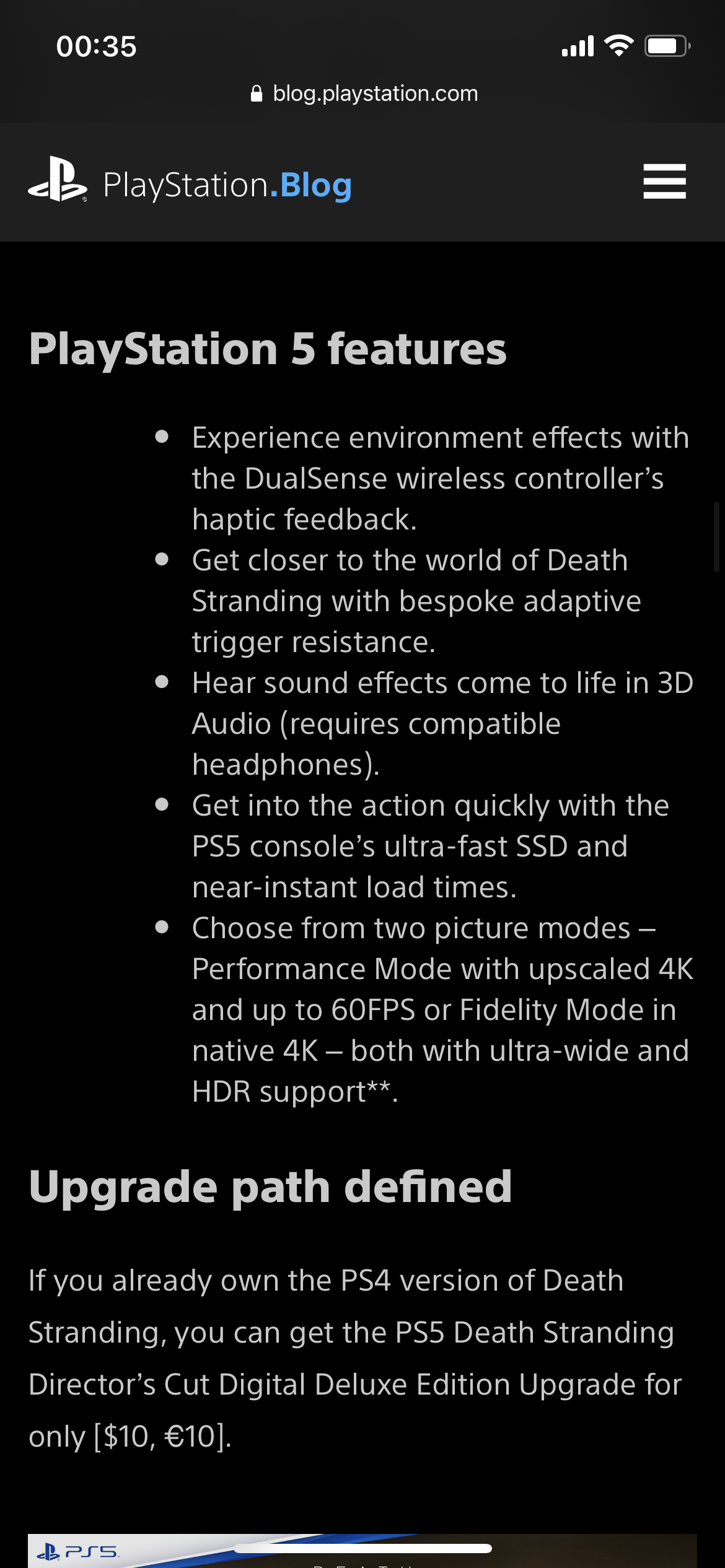 "If you already own the PlayStation 4 version of Death Stranding, you can get the PlayStation 5 Death Stranding Director’s Cut Digital Deluxe Edition Upgrade for only [$10]."