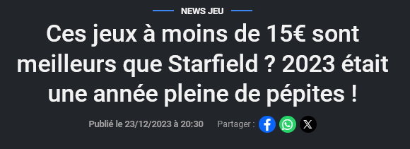 shinz0 : c'est devenu la mode chez les youtubeurs, influenceurs et journalopes de citer Starfield à toutes les sauces pour le descendre même quand ça n'a aucun rapport comme ici... ils sont ridicules.