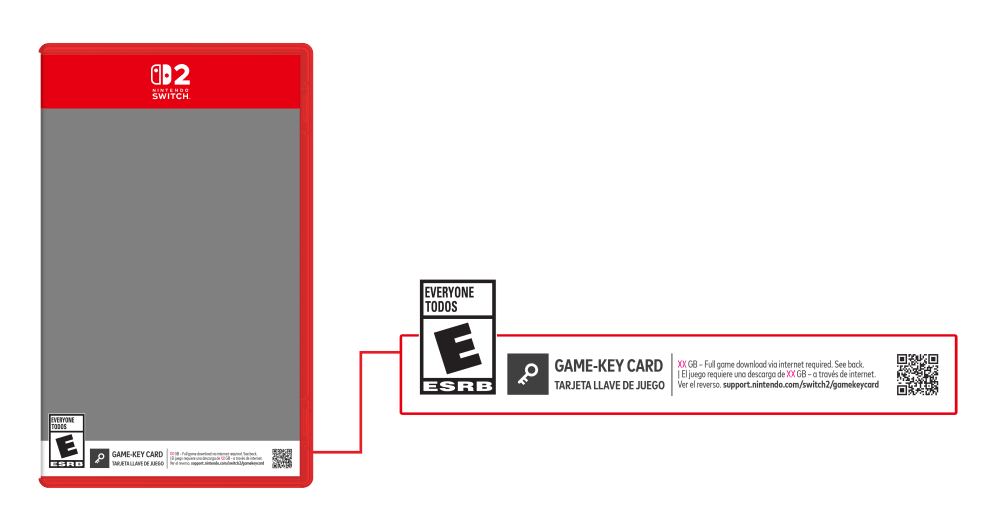 La mention Game Key Card ressemble à ça, il précisera combien de GB sont nécessaires à télécharger, et pour l'instant ce bandeau n'est présent dans aucune boîte dévoilée.