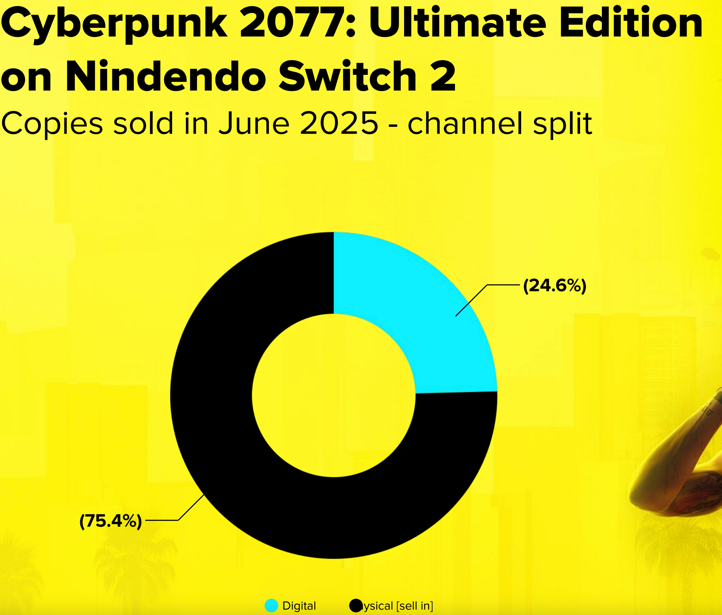 Selon les informations fourni par le site officiel de cdprojekt, on apprend que plus de 75%(75,4 pour être précis) des ventes sur Switch 2 ont été réalisées sur cartouche (contre 24,6% en démat).