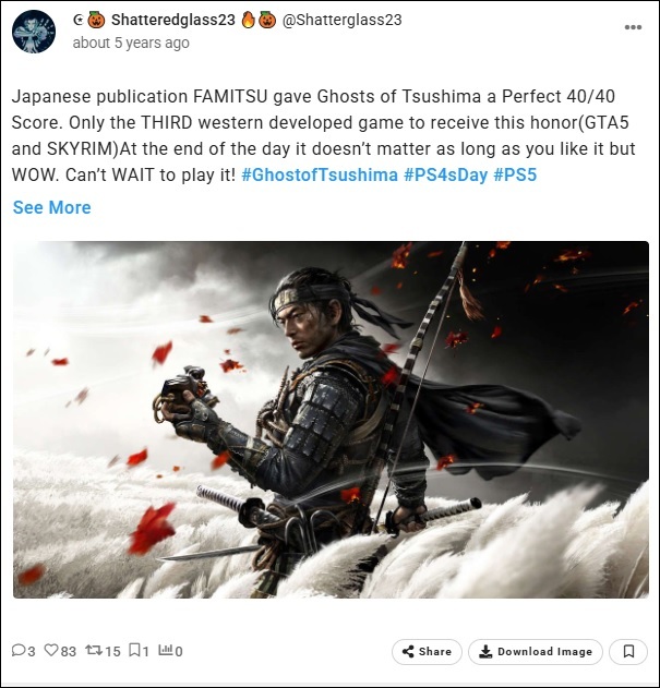 Il frôle donc la note parfaite, qu'avait eu à l'époque Ghost of Tsushima.