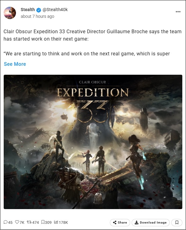 Guillaume Broche, directeur créatif de Clair Obscur Expedition 33, annonce que l'équipe a commencé à travailler sur son prochain jeu :