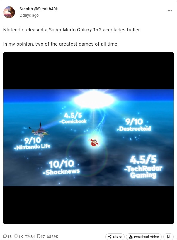 Nintendo a publié une bande-annonce des éloges reçues par les jeux Super Mario Galaxy 1 et 2.