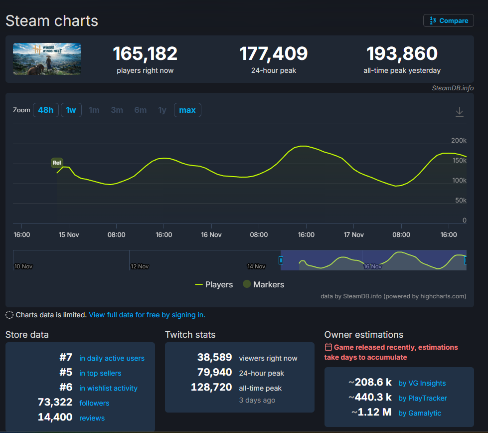 Je n'ai pas vu d'articles sur ce jeu, donc j'en profite pour indiquer la bonne performance de ce jeu gratuit sorti le 14 novembre.