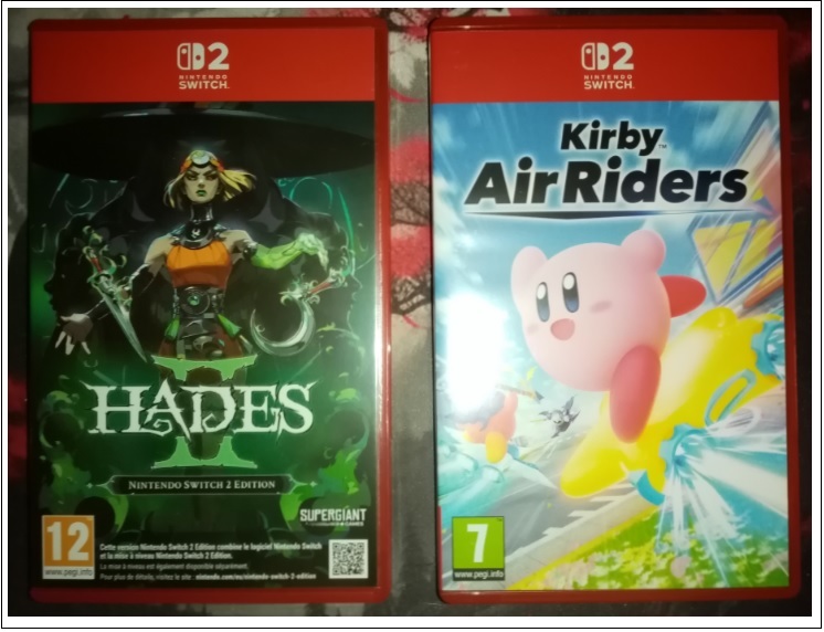 J'ai reçu le jeu Hades 2. J'ai aussi pris Kirby, ça sera parfait pour les soirée entre potes avec Mario Party et Mario Kart World.