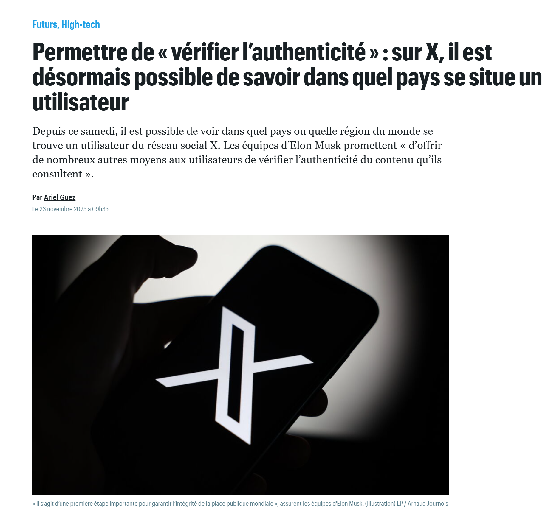 ça a permis de voir des trucs marrant comme le fait que la majorité des comptes MAGA (Make America Great Again) sont basés en Inde, ou que d'autres de Palestiniens "basés" à Gaza sont en réalité en indonésie