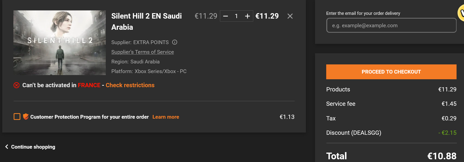 une fois le jeu mis dans le panier (attention prenez le "regular price" pas le "smart price")