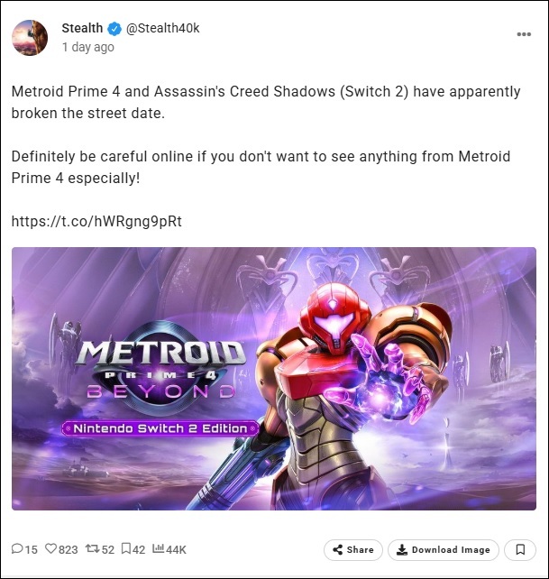Des rapports indiquent que certains revendeurs ont décidé de commercialiser Metroid Prime 4: Beyond et Assassin’s Creed Shadows avant leur sortie officielle. On ignore comment cela se produit, mais il semblerait qu’un malentendu se soit encore produit et que des exemplaires se retrouvent en circulation. Ce n’est pas trop grave pour Assassin’s Creed Shadows, car le jeu est déjà disponible sur d’autres plateformes. En revanche, pour Metroid Prime 4: Beyond, la situation est bien plus délicate !