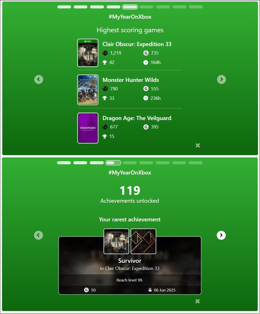 J'ai savouré Clair Obscur : Expédition 33 et je joues encore quotidiennement à Monster Hunter Wilds. Partagez vos statistiques !