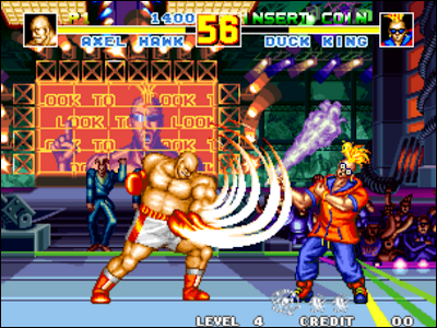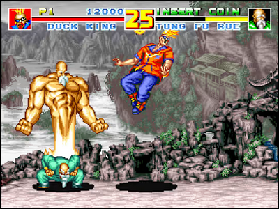 Visuellement, Fatal Fury Special représente l’aboutissement du savoir-faire SNK sur Neo Geo à cette période. Les sprites sont massifs, expressifs, richement animés, et les décors regorgent de détails vivants sans jamais nuire à la lisibilité. Chaque arène raconte un lieu, une culture, une atmosphère, renforçant l’identité de chaque combattant. Les stages de Tung et Duck King justement sont particulièrement léchés et réussis !