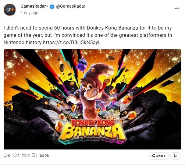 Bananeza est sympa sans plus , très loin de ce que l'on pouvait attendre dune adaptation 3d pleine de l'univers que l'on connait c'est peut être le problème mais la réponse de Nintendo est de s'en éloigner pour une autre proposition plus simple et légère .