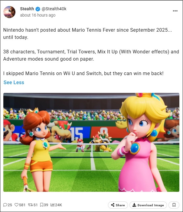 Nintendo a révélé que le prochain titre phare de la Nintendo Switch 2, Mario Tennis Fever, proposera le plus grand nombre de personnages jouables de toute la série. Le jeu offrira 38 personnages jouables, dont bien sûr la Princesse Peach et la Princesse Daisy. Les précommandes sont ouvertes pour Mario Tennis Fever, qui sortira le 12 février exclusivement sur Nintendo Switch 2.