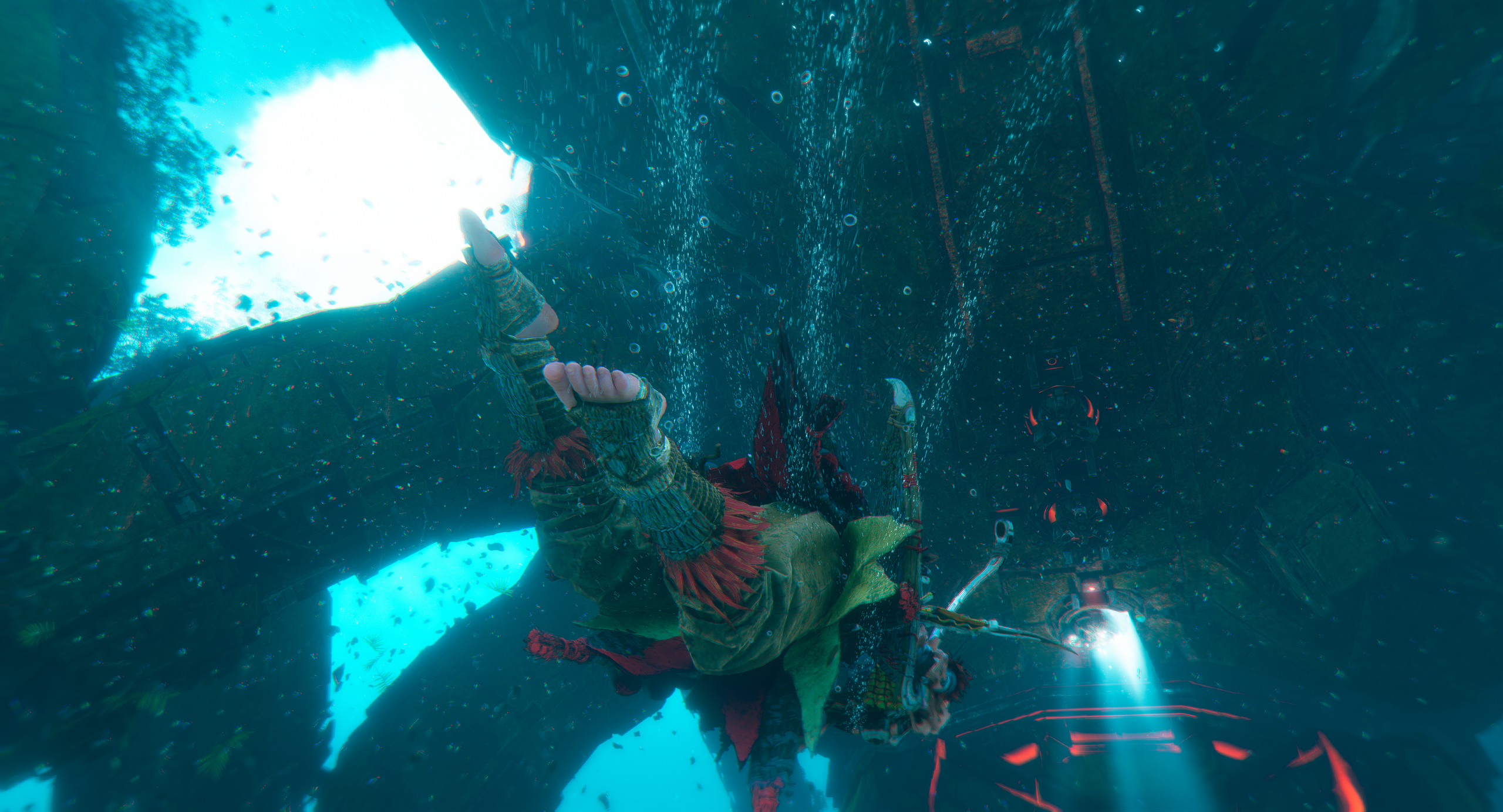Les nuages volumétriques, la mer, l'éclairage, les transitions sol/air/fond marin avec la nouvelle monture… On sent que Burning Shores a été pensé comme une vitrine PS5 assumée. C’est probablement l’un des contenu les plus “current gen only” que j'ai vu: