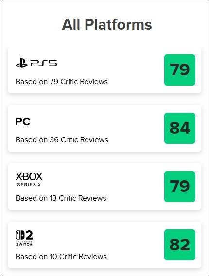 Voici tout d'abord les moyennes Metacritic du titre sur chaque support :