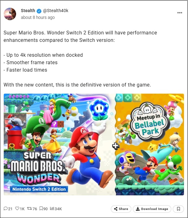 Et ceux qui ont acheté le jeu à sa sortie sur Switch, ils ont droit à une MàJ gratuite pour les améliorations de résolution/framerate et temps de chargement ? Comme ca a pu etre le cas pour d'autres jeux (notamment SMO ou SM3DW).