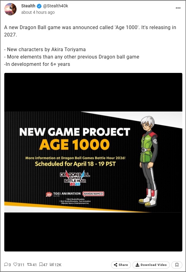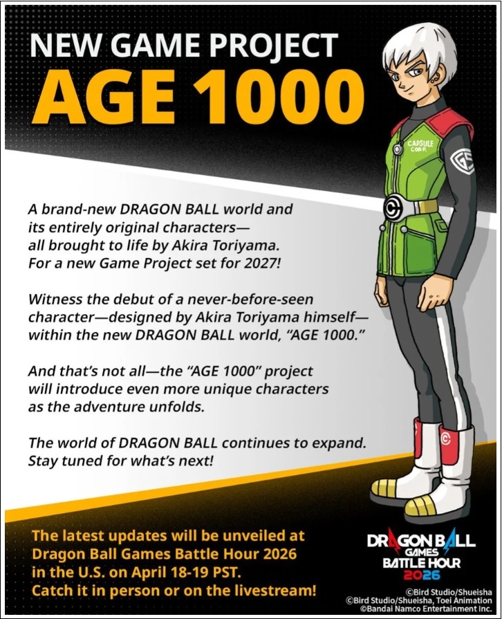 Un nouveau jeu Dragon Ball, intitulé « AGE 1000 », a été annoncé :