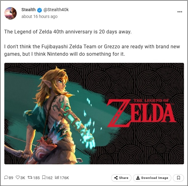 A voir si l'équipe Zelda de Fujibayashi ou Grezzo sont prêts à sortir de nouveaux jeux, mais il se peut que Nintendo proposera quelque chose pour l'occasion.