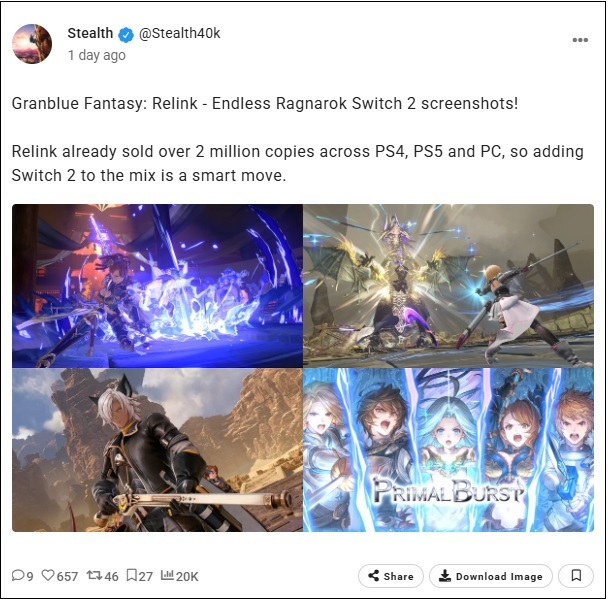 Granblue Fantasy: Relink s'est déjà vendu à plus de 2 millions d'exemplaires sur PS4, PS5 et PC ; l'arrivée sur Switch 2 est donc une excellente initiative.