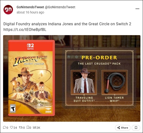La Switch 2 bénéficie de portages de plus en plus impressionnants techniquement. Indiana Jones et le Grand Cercle, disponible le 12 mai 2026, en fait désormais partie. Vous vous demandez à quoi ressemble cette version par rapport à celles des autres consoles ? Digital Foundry nous livre une analyse détaillée.