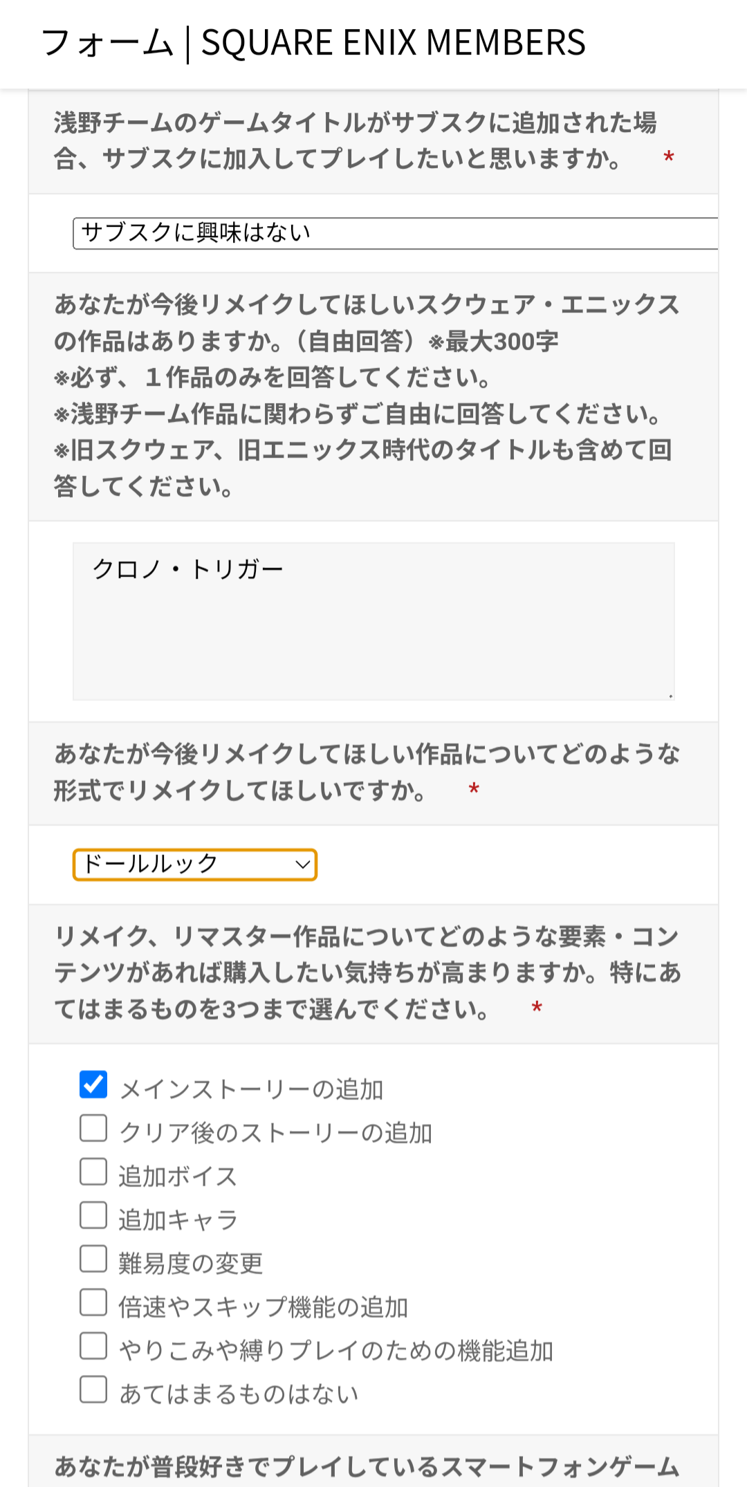 L'équipe Asano de Square Enix a lancé un nouveau sondage concernant ses jeux.