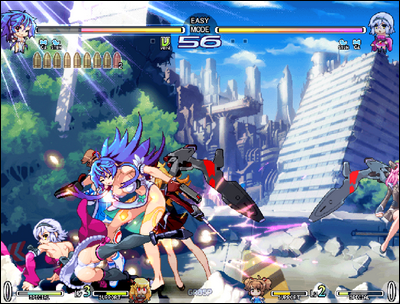 Cette mécanique rappelle les super combos dans d’autres jeux Vs. classics, mais le design visuel des Liberty Arts est souvent plus explosif et manga, ce qui plaît à certains mais peut être distrayant pour d’autres. Ces attaques sont accompagnés d’une animation style animé japonais, et ce sera toujours l’occasion d’avoir une pantsu shot de toute beauté, ou juste du fan-service bien gras.