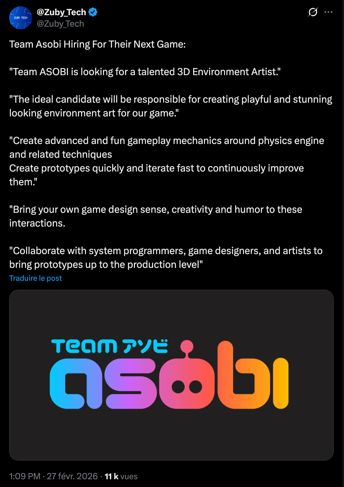 Le studio japonais derrière le jeu Astro Bot recrute actuellement pour son prochain jeu !