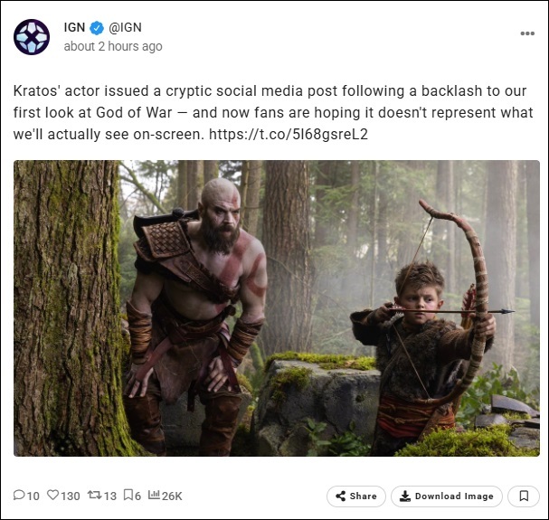 Amazon a dévoilé vendredi les premières images de sa série télévisée God of War, et le résultat a été catastrophique. Les internautes se sont empressés de s'extasier devant la photo du tournage de l'adaptation en prises de vues réelles, où l'on aperçoit Ryan Hurst dans le rôle de Kratos et le jeune acteur Callum Vinson dans celui d'un très jeune Atreus. La toile s'est immédiatement enflammée, partagée entre confusion et perplexité. Hurst a réagi à la polémique sur Instagram avec un message énigmatique qui laisse certains fans espérer un retournement de situation à la « Sonic ratée ».
