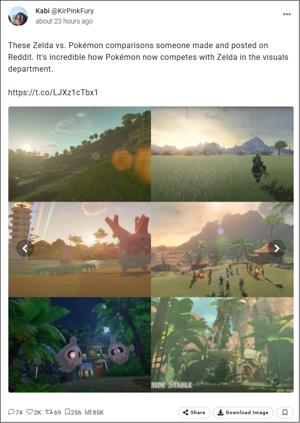 Ces comparaisons entre Zelda et Pokémon ont été réalisées et publiées sur Reddit. C'est incroyable de voir à quel point Pokémon rivalise désormais avec Zelda au niveau visuel.