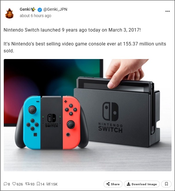 La Nintendo Switch a été lancée il y a 9 ans aujourd'hui, le 3 mars 2017 !