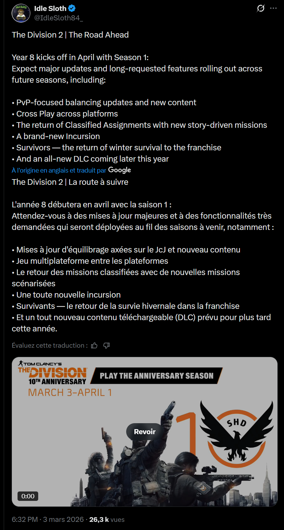 Année 8 de The division 2, retour de la survie, un dlc prévu et arrivée du crossplay (enfin)