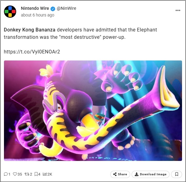 Le magazine a aussi interrogés Kenta Motokura, producteur de Donkey Kong Bananza, et Tatsuya Kurihara, programmeur, sur la manière dont Nintendo s'est assuré que les transformations Bananza du jeu soient équilibrées et n'entraînent pas trop de destruction. Kurihara a alors déclaré que la transformation Éléphant était « probablement allée trop loin », mais qu'au final, « elle est amusante ».